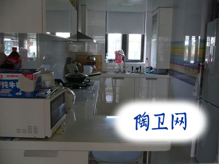 白色的櫥柜,有點(diǎn)跟白色的墻磚融合的感覺(jué)。