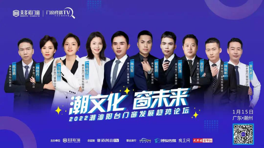 潮文化-窗未來——美多裕2022潮汕陽臺門窗發(fā)展趨勢論壇于1月15日隆重開啟,美多裕門窗董事長林龍智、美多裕門窗副總經(jīng)理丘明、美多裕門窗營銷總經(jīng)理韓鵬飛、美多裕門窗粵東總指揮朱茂、林氏興裕鋁業(yè)總經(jīng)理周素芬、賽道創(chuàng)意CEO榮少以及美多裕門窗廣東潮汕地區(qū)的一眾經(jīng)銷商齊聚在潮州,上演精彩的終端門店經(jīng)營發(fā)展思想盛宴。