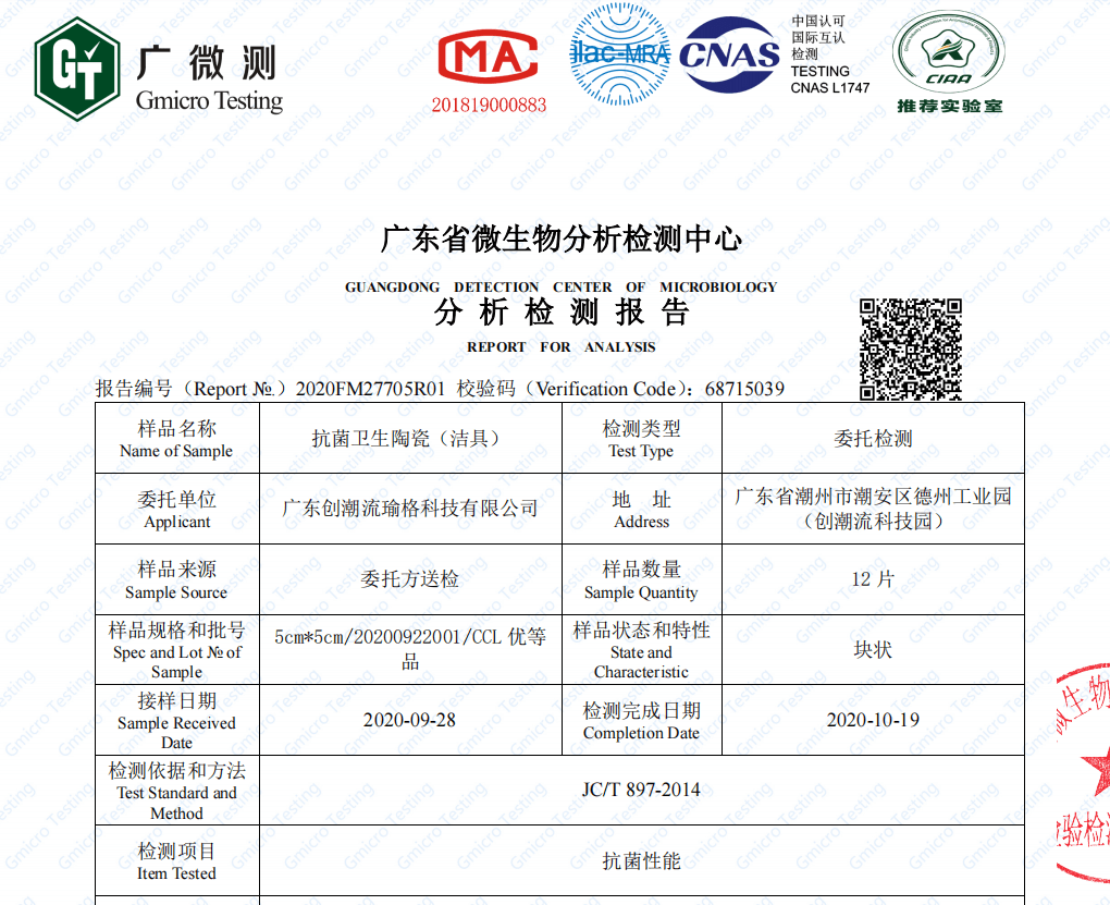 此外,創(chuàng)潮流聚焦抗菌衛(wèi)浴,打造行業(yè)專業(yè)化抗菌領導者形象,搶占健康衛(wèi)浴新賽道??咕闫髟谔沾捎粤现刑砑訌秃霞{米抗菌材料,通過高溫燒制以及它的催化功能,有效的抑制并滅殺細菌,從而達到抗菌易潔、除霉防臭的效果;抗菌衛(wèi)生陶瓷經(jīng)權(quán)威機構(gòu)檢測,對大腸桿菌、金黃色葡萄球菌抗菌率高達95%以上,并實現(xiàn)馬桶長效抗菌。2021年,創(chuàng)潮流抗菌產(chǎn)品榮獲中國廚衛(wèi)榜“抗菌衛(wèi)浴產(chǎn)品金獎”。