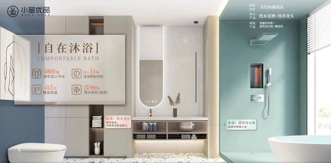 一直堅(jiān)守【加熱+凈化】全衛(wèi)領(lǐng)域的小圣優(yōu)品,提出「不是所有衛(wèi)浴,都能加熱凈化」的品牌特性,挖掘中國(guó)家庭高質(zhì)量消費(fèi)需求,在廚房洗切、日常盥洗、自在沐浴、舒適如廁、陽(yáng)臺(tái)洗護(hù)【5大3空】的家庭用水+衛(wèi)浴場(chǎng)景中主導(dǎo)下,引進(jìn)歐洲末端制熱系統(tǒng),以全衛(wèi)空間定制,給家?guī)?lái)整體舒適熱水體驗(yàn)。