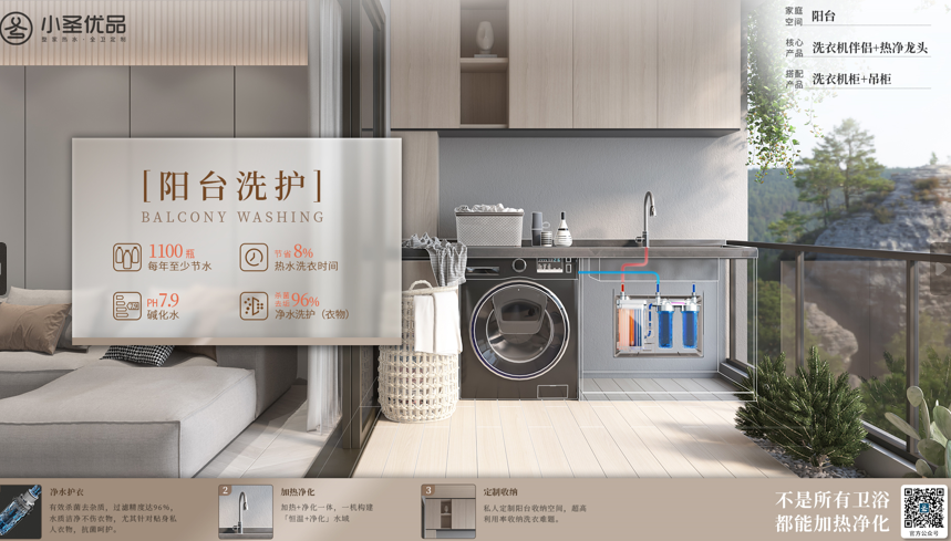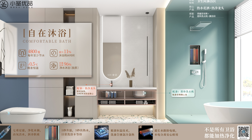 正是在這一背景下,小圣優(yōu)品衛(wèi)浴聚焦年輕消費(fèi)市場,以高顏值、科技智能、年輕化定制、舒適健康、人文關(guān)懷的品牌形象橫空出世。劉祥透露,經(jīng)過疫情三年,年輕消費(fèi)者更加注重健康用水。劉祥表示,小圣優(yōu)品將家庭用水空間劃分為廚房、衛(wèi)生間、陽臺(tái)三大空間,廚房洗切、日常盥洗、自在沐浴、舒適如廁、陽臺(tái)洗護(hù)五大場景。劉祥指出,當(dāng)前大部分家庭的衛(wèi)生間、廚房、陽臺(tái)并沒有熱水系統(tǒng),嬰兒、女士等衣服清洗并不便捷,小圣優(yōu)品衛(wèi)浴針對各個(gè)空間、場景用水“痛點(diǎn)”提供健康、智能化的歐洲末端制熱系統(tǒng)解決方案,從水質(zhì)、品效、節(jié)水、接電等方面出發(fā),幫助家庭用水的三大空間五大場景24小時(shí)無限量恒溫?zé)崴?,真正?shí)現(xiàn)整家熱水,全衛(wèi)定制。