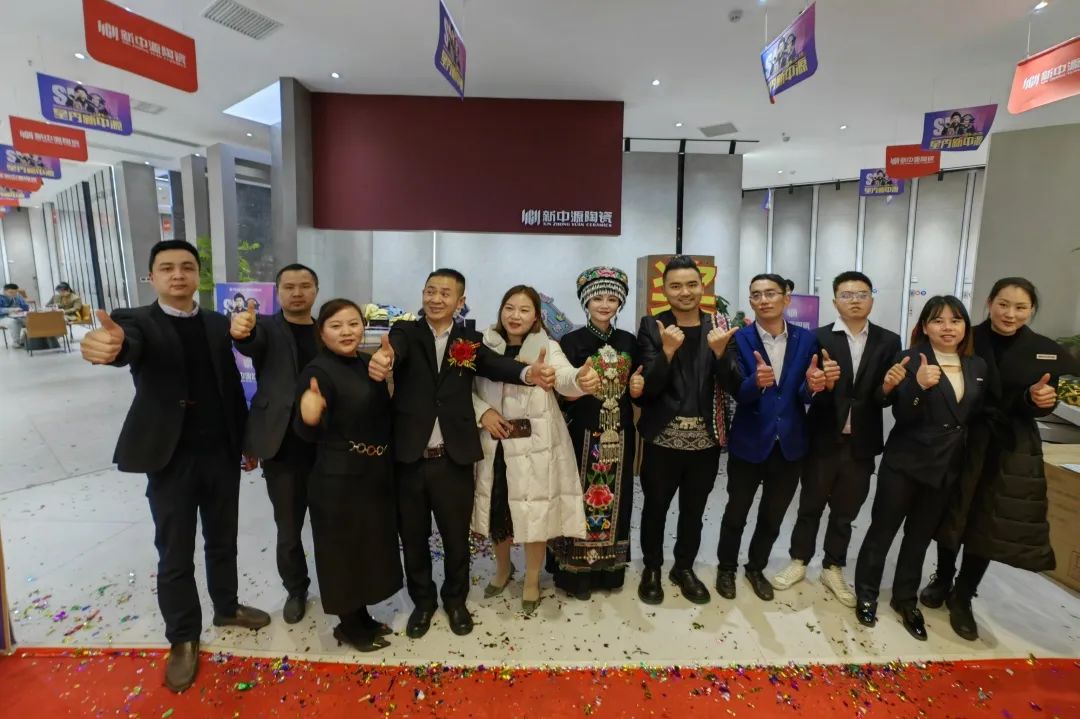 居然之家(懷化店)總經(jīng)理周澤先生、廣東新中源陶瓷華南大區(qū)總經(jīng)理劉建勛先生、廣東新中源陶瓷華南大區(qū)區(qū)域經(jīng)理周臻波先生、懷化新中源陶瓷總經(jīng)理寧武元先生、懷化市建筑室內(nèi)設(shè)計(jì)學(xué)會(huì)設(shè)計(jì)師會(huì)員代表李見(jiàn)先生、懷化新中源陶瓷副總經(jīng)理?xiàng)畛倥繑y手山水組合為懷化新中源陶瓷素簡(jiǎn)美學(xué)館進(jìn)行揭幕開(kāi)業(yè)儀式!