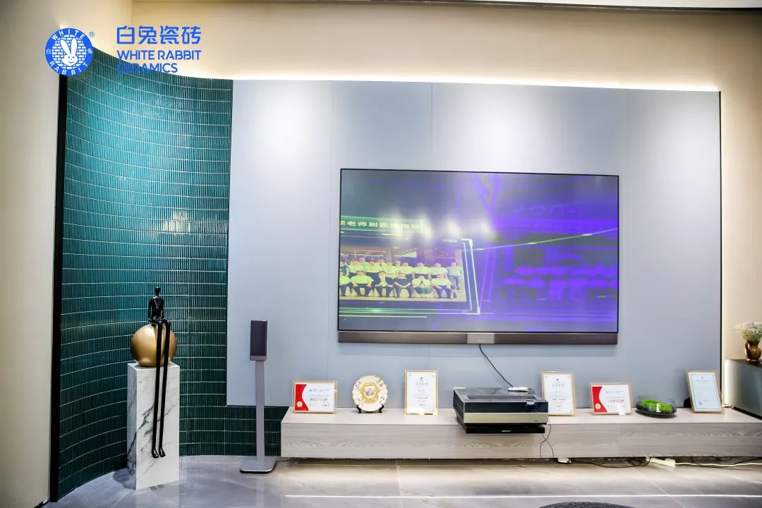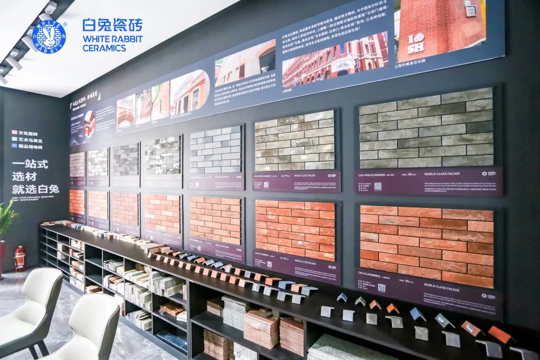 展廳內(nèi)白兔瓷磚三磚新品一應(yīng)俱全,從單品的品質(zhì)細(xì)節(jié)、多元應(yīng)用,到外墻空間、茶室空間等多樣化室內(nèi)外全屋空間解決方案,精準(zhǔn)滿足多元化終端消費(fèi)需求,煥新消費(fèi)者的人居生活體驗(yàn)。