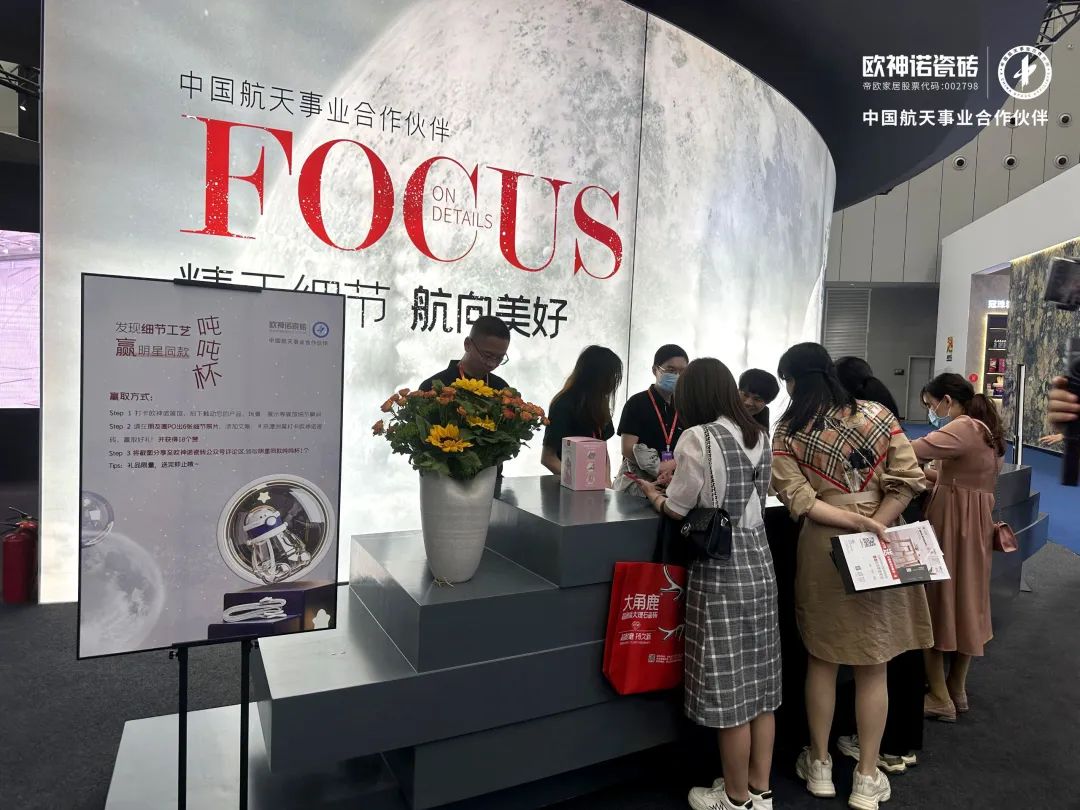 洞察時(shí)代前沿的藝術(shù)美學(xué),不斷深化對(duì)細(xì)節(jié)工藝的探索。歐神諾「細(xì)節(jié)派 實(shí)力+」展館,以“精于細(xì)節(jié)工藝”和航天精神為核心,全方位展示歐神諾代表性產(chǎn)品、航天級(jí)別細(xì)節(jié)工藝、A+空間服務(wù)體系、應(yīng)用系統(tǒng)和強(qiáng)大的工程實(shí)力,完美呈現(xiàn)細(xì)節(jié)工藝之美,在一眾設(shè)計(jì)中火速出圈。