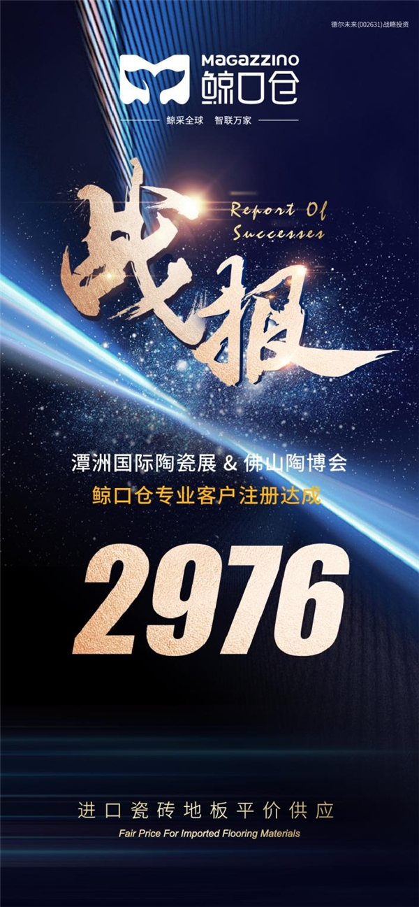 2976!以客戶信任成就數(shù)據(jù)新階段,截至潭洲陶瓷展與佛山陶博會結(jié)束,鯨口倉小程序?qū)I(yè)客戶注冊已突破2976人!