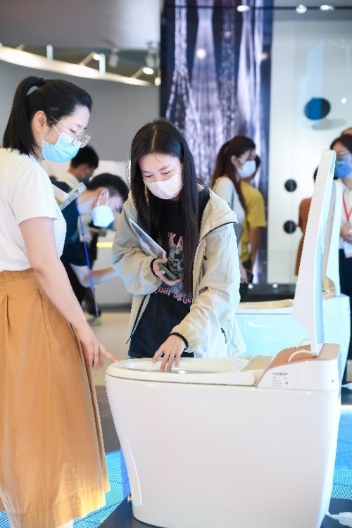 自推出以來,摩恩的智能座便器系列向來備受消費者青睞,此次,可監(jiān)測體脂健康的摩恩智能健康監(jiān)測座便器系列首次現(xiàn)身KBC展臺,該產(chǎn)品搭載摩恩自研算法,通過日常如廁輕松測得身體數(shù)據(jù),用戶點開手機App即可精準了解家人健康狀況,及時做好全家人的健康管理。而新月系列智能座便器在摩恩的腳踢控制,揮手翻蓋這些在推廣的功能基礎(chǔ)上,還能通過100多個語音控制詞條全程語音控制無需手部接觸;且每次使用離座后,馬桶內(nèi)壁會噴灑電解水到盆腔內(nèi)壁進行除菌。