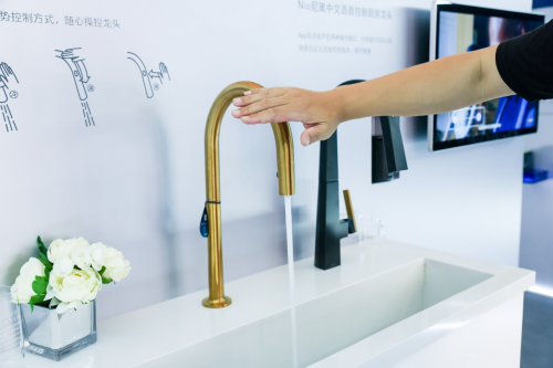 在智聯(lián)水產(chǎn)品區(qū)域(MOEN Smart Water Network),摩恩Apphia智能手勢控制廚房龍頭備受關(guān)注。功能方面,該款產(chǎn)品可通過手勢指令精準控制龍頭開關(guān)水、水量及水溫,并實現(xiàn)自定義的不同場景用水設定;外觀方面,則采用去把手設計,簡約典雅的外觀造型,與感應黑科技相映成輝。