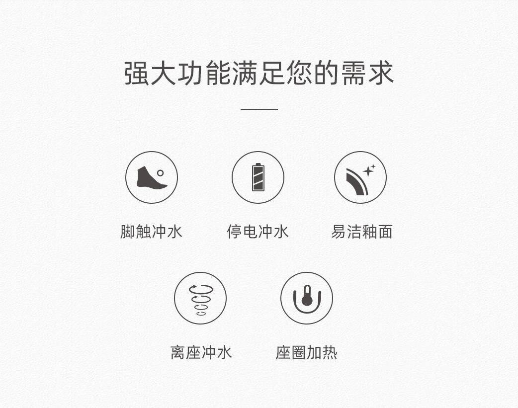 如果說座圈加熱解決了如廁冰冷和細(xì)菌傳播,惠達(dá)HDE2002T輕智能馬桶的這些獨(dú)特功能更能提升如廁的整體感受。零壓沖水,無(wú)論多高樓層,都能輕松沖廁;停電沖水,遠(yuǎn)離停電不能沖廁的尷尬;腳觸沖水,解放雙手,讓如廁更簡(jiǎn)單衛(wèi)生;離座沖水,人走沖水,無(wú)需主動(dòng)操作;夜間照明氛圍燈,如廁也有儀式感。