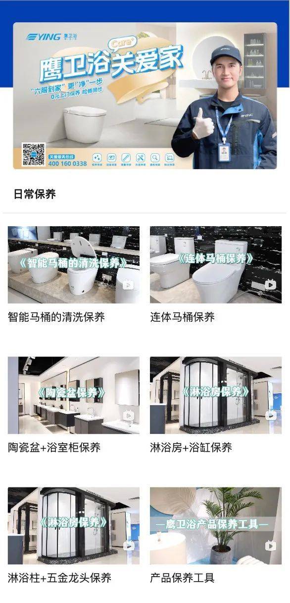 關(guān)注“鷹衛(wèi)浴”公眾號,在公眾號【服務(wù)】子欄目,即可進(jìn)入「CARE+關(guān)愛家」售后服務(wù)中心