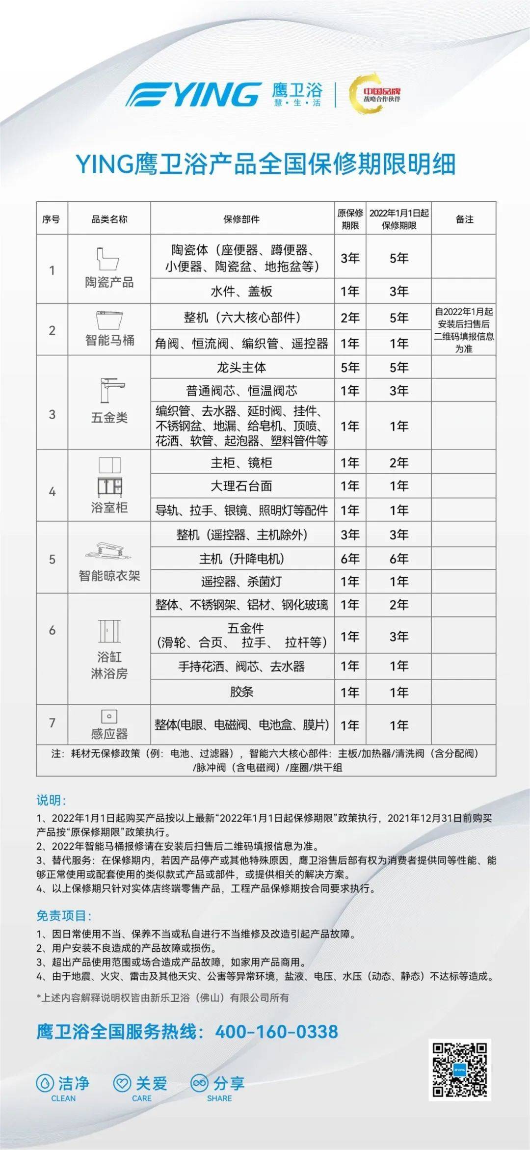 鷹衛(wèi)浴已對全線產(chǎn)品進(jìn)行質(zhì)保升級,延長質(zhì)保期,帶來更全面的服務(wù)體驗。其中,智能馬桶的整機(jī)質(zhì)保服務(wù)升級為5年,并推出“智能馬桶安裝提報系統(tǒng)”,通過微信掃碼登記,自動生成產(chǎn)品唯一識別碼,讓用戶買得放心,用得稱心,無后顧之憂。