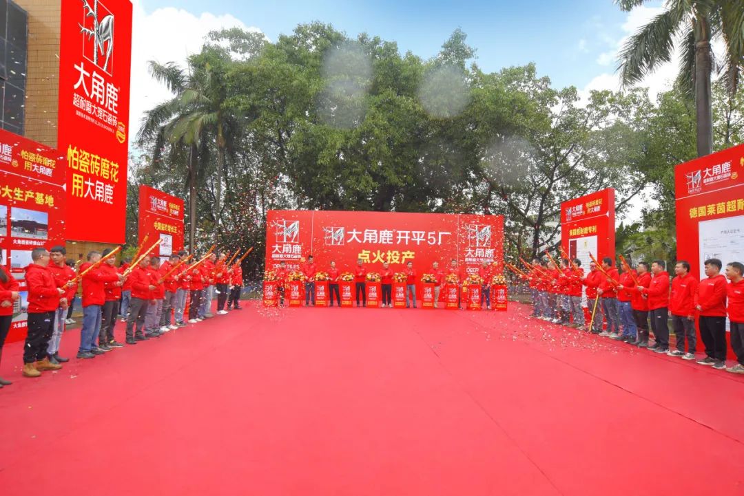 紅紅火火 產銷兩旺!在熊熊爐火和鞭炮聲中,大角鹿開平5廠正式點火投產。大角鹿創(chuàng)始人南順芝鼓勵全體員工全力以赴,努力奮斗,讓大角鹿瓷磚從中國增長王到全球增長王。