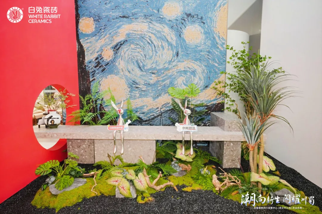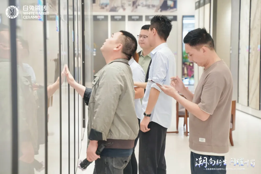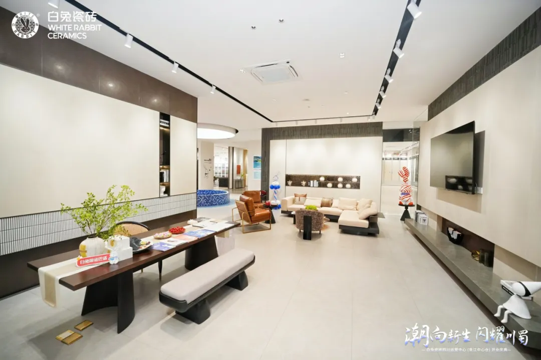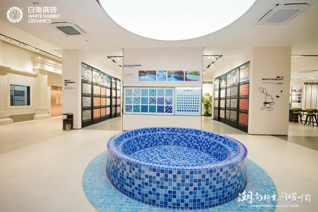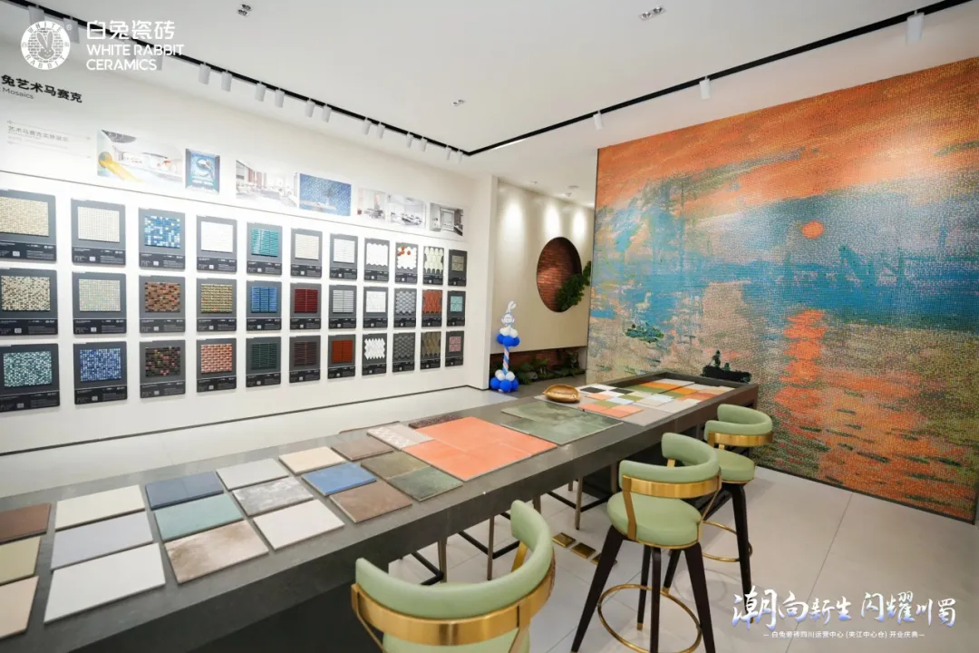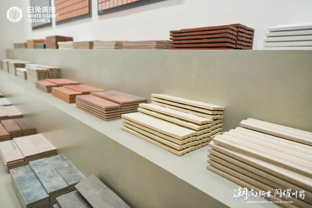 白兔瓷磚四川運(yùn)營中心(夾江中心倉)展廳內(nèi)新品琳瑯滿目,以臻品墻地磚、藝術(shù)馬賽克、別墅外墻磚/精工外墻磚、小地磚“三磚融和 四磚并驅(qū) 五磚齊發(fā)”的產(chǎn)品品類矩陣,從單品的品質(zhì)細(xì)節(jié),到空間多元應(yīng)用,從室內(nèi)室外,到墻上地面,打造一站式選材新體驗(yàn),一應(yīng)俱全的產(chǎn)品可滿足多元化的消費(fèi)需求,構(gòu)建美好的空間想象。