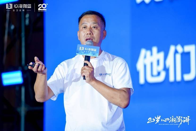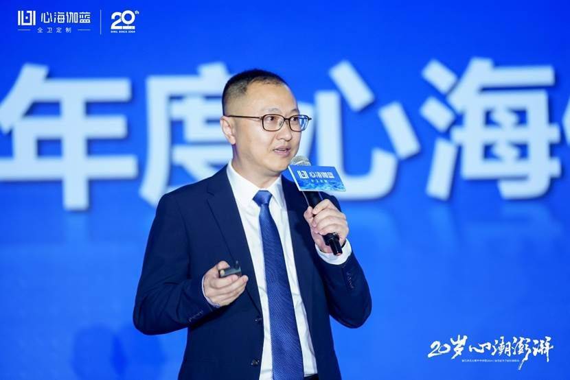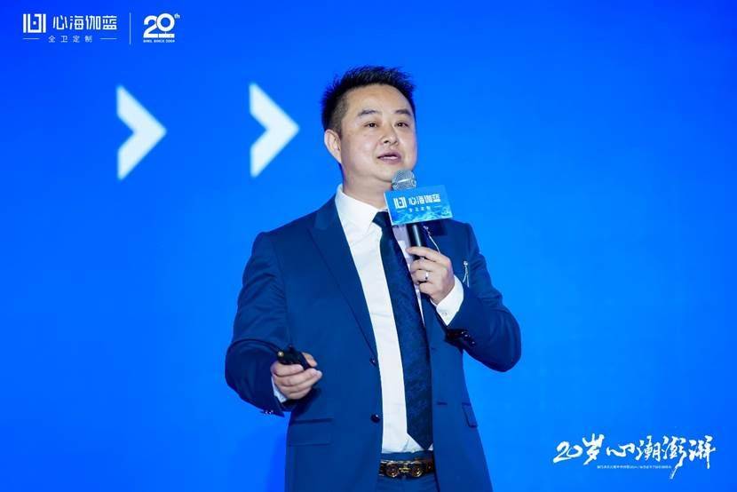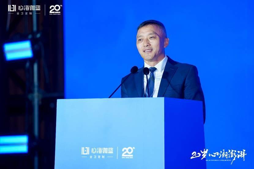 晚宴開始,張愛民董事長在閃耀燈光中登場,熱情洋溢地發(fā)表了20周年報告。張董真情流露地回顧了公司20年的發(fā)展歷程,從幾個人的從浴室柜單一品類的獨角獸到全衛(wèi)定制戰(zhàn)略領(lǐng)航,從多品牌運作到贏伽電商、凱庭淋浴房,雅頌衛(wèi)浴等七大分公司/中心集團(tuán)發(fā)展,從專賣區(qū)到全國百城千家門店、至商業(yè)版圖覆蓋海外,心海伽藍(lán)始終敢為創(chuàng)新、銳意進(jìn)取,從率先扛起數(shù)智化生產(chǎn)大旗開始,心海伽藍(lán)始終堅持開放分享的態(tài)度,與行業(yè)共同成長。