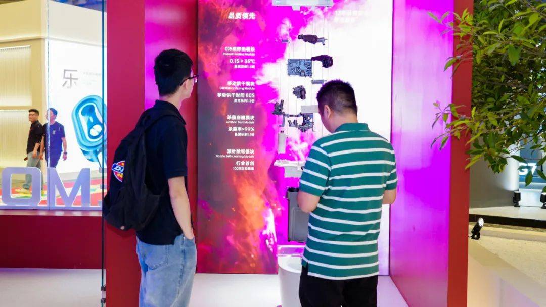 本次展會重磅推出M40智能馬桶。洞察群體生活痛點,為淺眠、隱疾等用戶帶來"3重養(yǎng)心科技"。柔和的氛圍尾燈充滿松弛感,保持視覺美感設(shè)計的同時,在靜音技術(shù)以及智能功能上也追求極致。