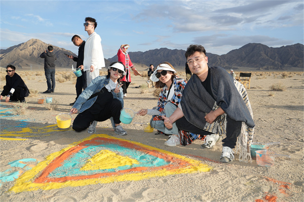 當(dāng)沙畫藝術(shù)遇到巖板,這場相遇注定不平凡,藝術(shù)家在巖板上繪制沙畫,利用巖板的特殊質(zhì)感和紋理,使沙畫作品更加生動逼真,將沙畫藝術(shù)的精髓融入到意大利施恩德巖板的自然之美中。于戈壁之中,遇見絕美意境。沙畫藝術(shù)與巖板的結(jié)合體現(xiàn)了更廣泛的人居生活與藝術(shù)跨界的可能,為參與者帶來了更多元化、更具創(chuàng)新性的藝術(shù)享受。