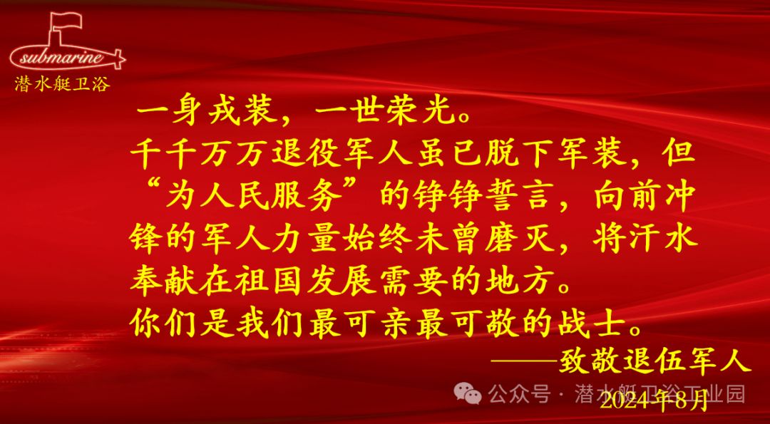昔日,他們是保衛(wèi)家國的人民子弟兵。今朝,脫下軍裝的他們,成為了愛崗敬業(yè)的潛水艇衛(wèi)浴工作者。崗位上,他們始終保持著軍隊(duì)培養(yǎng)出來的血性、品德和素質(zhì)。他們用堅(jiān)韌的意志、拼搏的精神詮釋著,退伍不褪色、退役不退志!