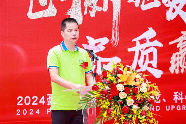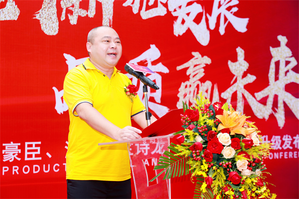 活動盛典伊始,裕輝集團(tuán)·董事長羅國添上臺致開場詞,為整場大會奠定了基調(diào),首先向全國經(jīng)銷商家人們致以衷心的感謝,在過去的歷程發(fā)展中,裕輝集團(tuán)一路斬獲優(yōu)秀的業(yè)績離不開每一位經(jīng)銷商的辛勤付出和緊密合作,同時強(qiáng)調(diào)新產(chǎn)品新工藝、生產(chǎn)實(shí)力和強(qiáng)化終端的重要性,我們要緊跟時代步伐,加大技術(shù)創(chuàng)新和產(chǎn)品研發(fā)力度,為各位經(jīng)銷商伙伴賦能,提升競爭力和市場占有率,讓我們攜手追夢,共創(chuàng)美好未來!