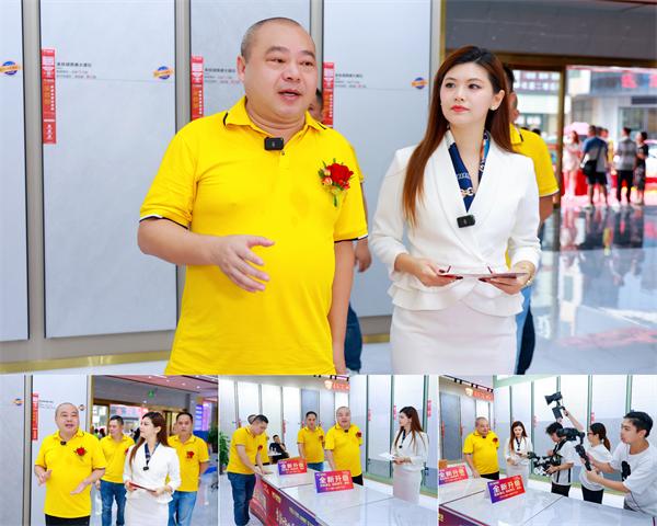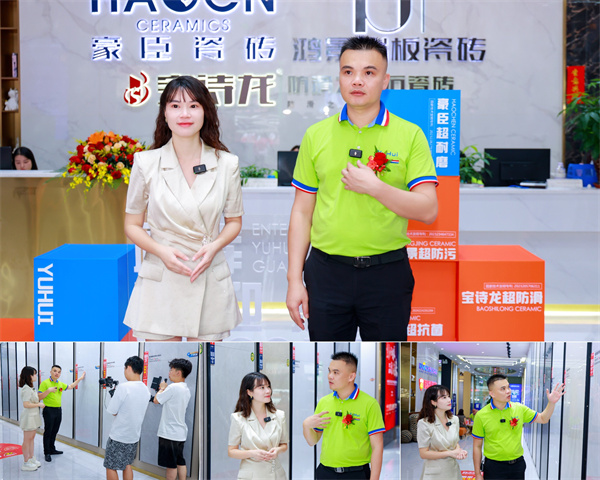 隨后直播伊始,跟隨著裕輝集團(tuán)·董事長羅國添腳步來到了產(chǎn)品煥新升級展示區(qū)域,羅總分別從工藝、設(shè)備、材料等多個角度闡述了此次產(chǎn)品煥新升級優(yōu)勢,強(qiáng)調(diào)產(chǎn)品磚坯白度提高、釉面亮度更透徹,打造出性能更耐磨、更防污的高質(zhì)量產(chǎn)品,磚面更平、更透、更自然。拒絕水波紋、拒絕R角、拒絕棍棒印、拒絕切割裂,解決建陶行業(yè)終端痛點(diǎn),還融入了更多創(chuàng)新元素和個性化設(shè)計(jì),堅(jiān)持以客戶為中心,重視用戶體驗(yàn),以滿足不同消費(fèi)者的需求。產(chǎn)品煥新升級發(fā)布會現(xiàn)場氣氛熱烈,經(jīng)銷商們和線上觀看直播的朋友們都對升級后的產(chǎn)品表現(xiàn)出濃厚的興趣和信心。