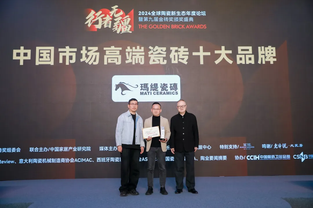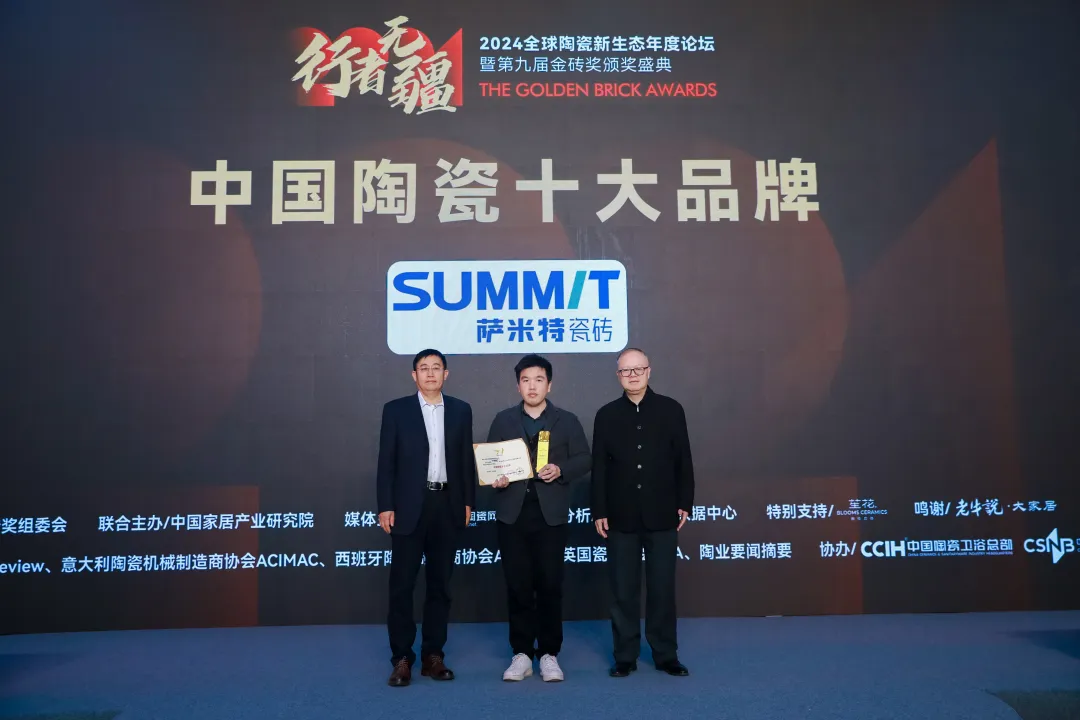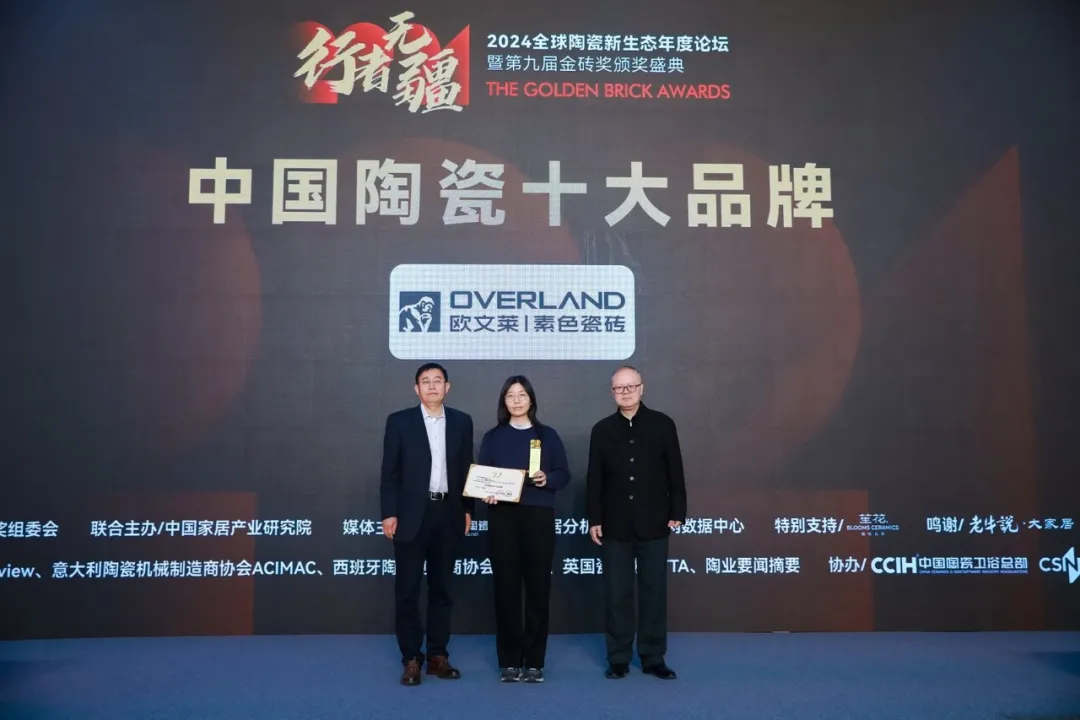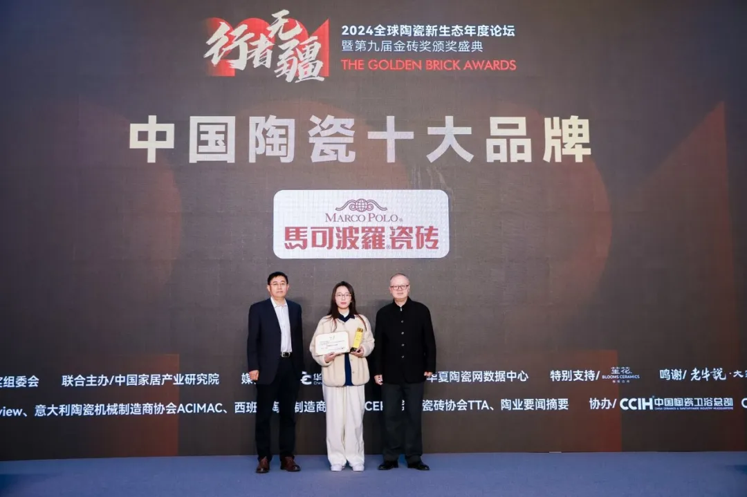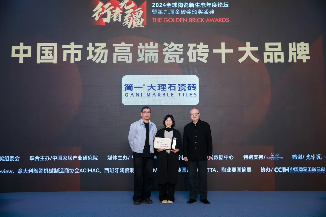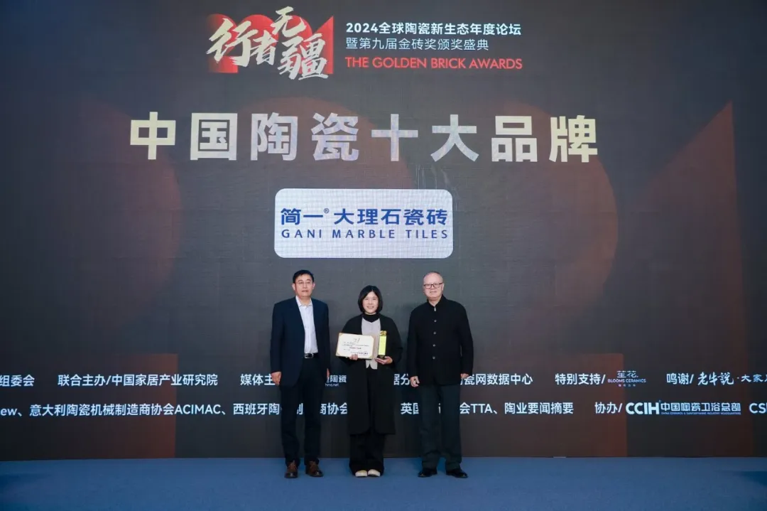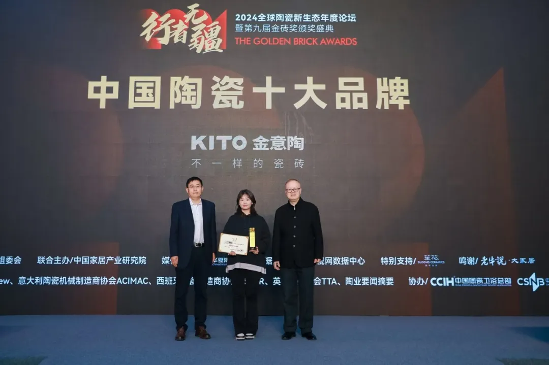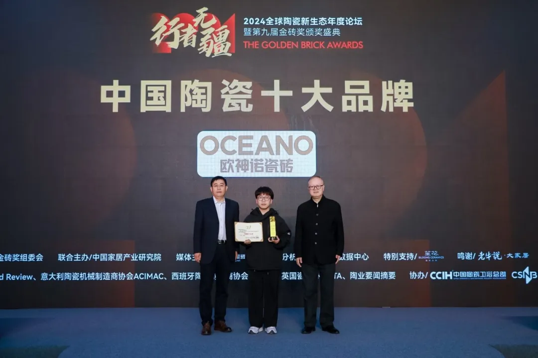 會上,還為進入“2024全球建筑衛(wèi)生陶瓷品牌TOP100”榜單(全名單另發(fā))的三個品牌亞細亞瓷磚、陶元帥瓷磚、KIMS巖板代表頒了獎。